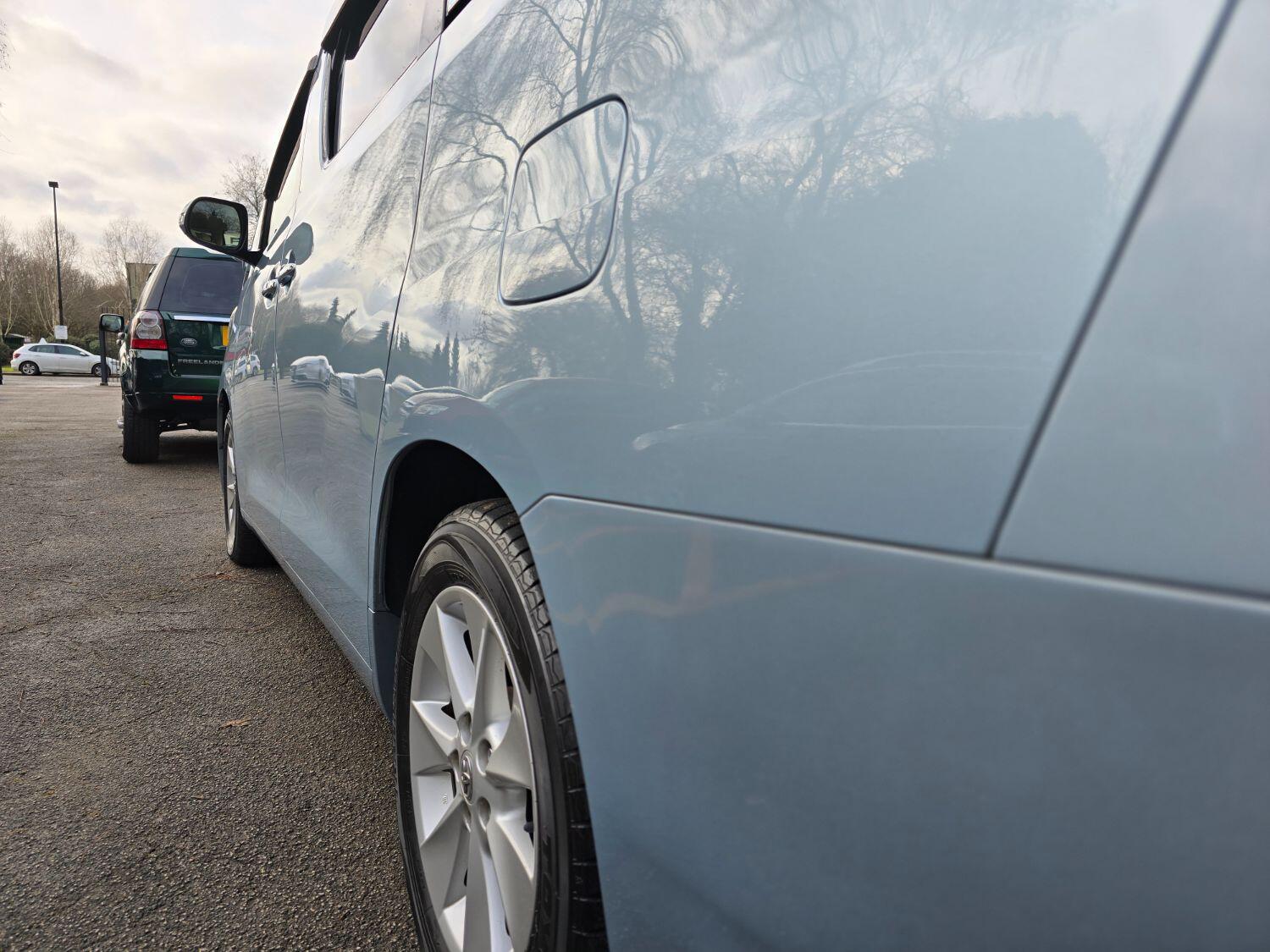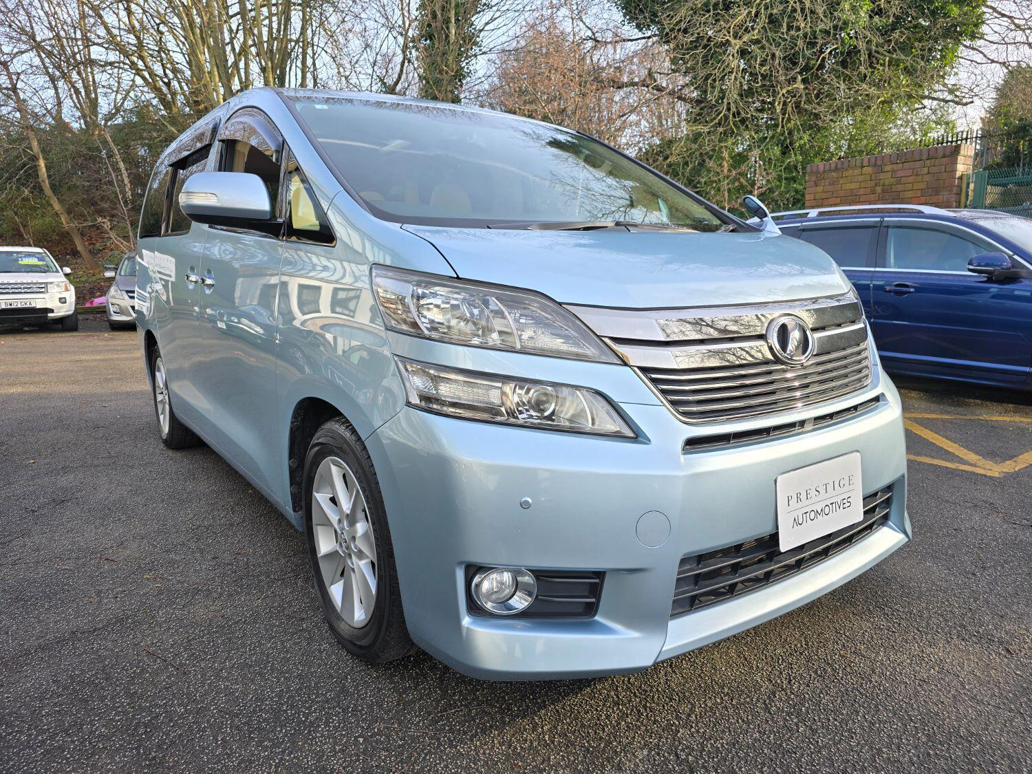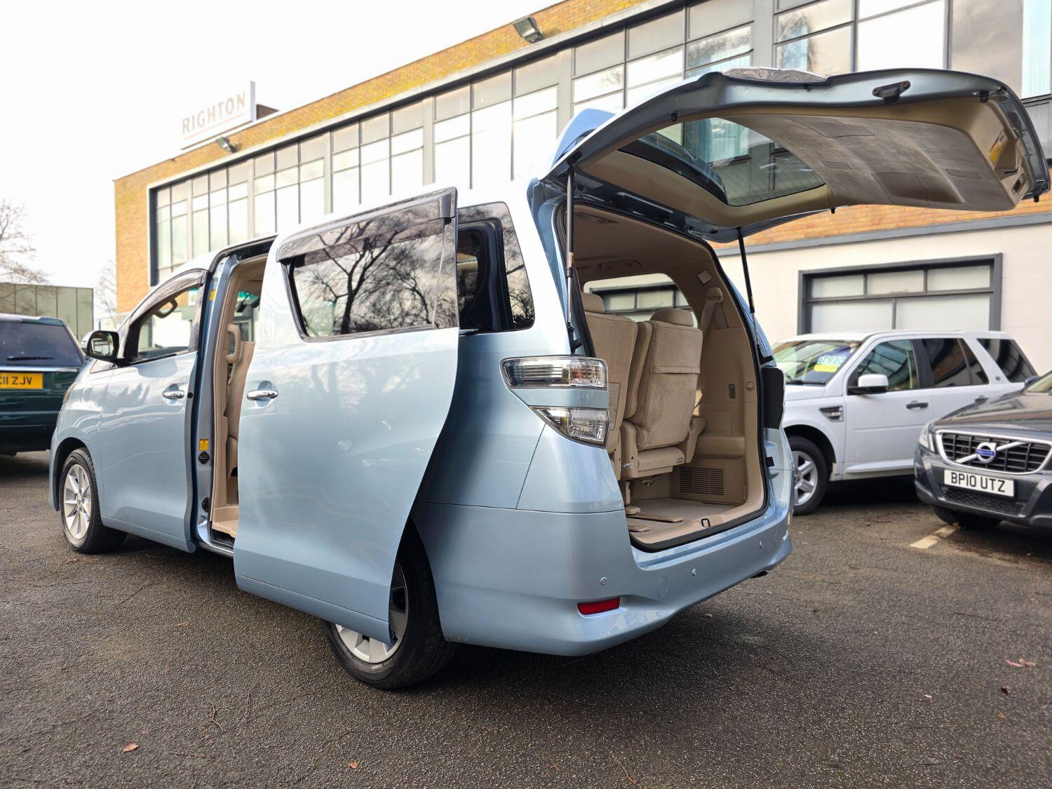 Ultra rare Toyota Vellfire, perfect luxury family cruiser that has only covered 13,841 verified miles (22,276 verified kilometers) from new. 3.5 LTR V6 Automatic, petrol ULEZ compliant. Huge Specification finished in light blue metallic with contrasting soft velour interior and wood combination dashboard. This vehicle comes with;