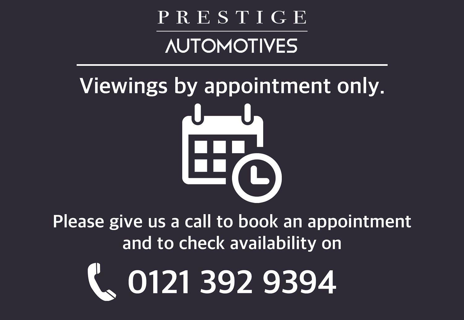 Please call if you wish to arrange a test drive as we are working strictly by appointment only. To ensure the vehicle you’re interested in is available, to book a viewing, test drive or to leave a reservation/deposit to secure your vehicle please call our offices on 0121 667 0233.